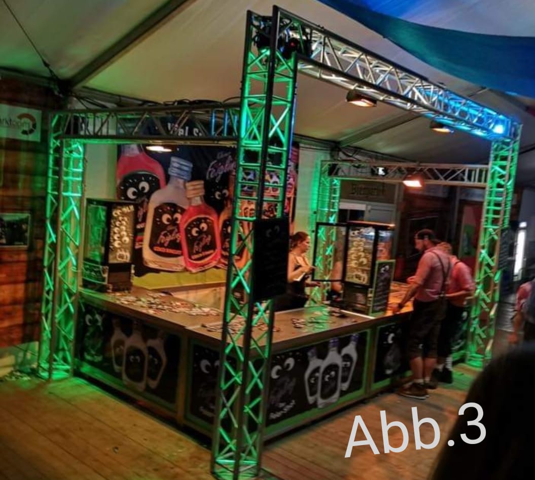 Thekenaufbau (Abb.3.). Auf Oktoberfesten, Hüttenfesten oder überall, wo wir ein mobiler Verkauf Sinn macht, sind wir mit einem Trolley (Abb.4) im 2er Team