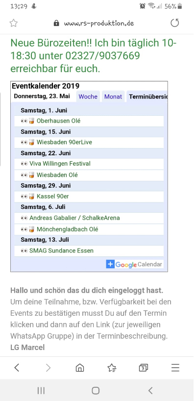 Im Eventkalender sind immer tagaktuell alle Termine eingetragen die anstehen.