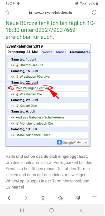 • Wenn Du im Kalender bist und (wie in dem Beispiel) deine Bereitschaft für den Termin angeben willst, dann klick auf den Termin.